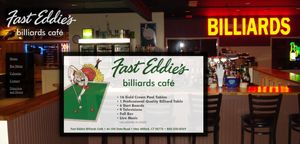 New Milford, CTFast Eddie's pool halls are entertainment venues named after the famous "Fast Eddie" from The Hustler, offering pool tables, a full bar with food, darts, arcade games, and a lively atm...